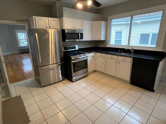 Recently renovated, spacious apartment with loads of parking! This space offers two floors of living, with three bedrooms, two full, upgraded, baths, and a kitchen with recent cabinet upgrades. The third floor features a master bedroom with an on-suite bathroom plus a very large bonus room for a home office. These rooms make up the entire third floor of the building, which make for a lot of space. The main floor, which is on level two of the building, has an open lay out with plenty of living space, including an oversized bedroom, and a newly upgraded bathroom. Off the back is an enclosed deck/three season porch, as well as outdoor deck space for the summer months. This beautiful unit comes with an oversized driveway that can fit at least 3 cars. There is also plenty of on street parking for visitors. Located just steps away from bus lines, schools, and parks, about 1.5 Miles from the Malden MBTA Station, and less than 20 minutes from downtown Boston. Owner pays Water & Sewage. Tenant responsible for other utilities. Brokerage fee equivalent to first month's rent.