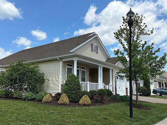 Lovely one level home in 55+ communitey of Village at Harvest Ridge. Upon entering you'll see the vaulted ceilings and the gleaming hardwood floors. The home boasts three good sized bedrooms and two full updated bathrooms. The spacious gourmet eat-in kitchen with granite counters, a large island great for food prep, lots of counter space and cabinetry, and GE Profile appliances is great for entertaining. The open floor plan includes a living room, which has a gas fireplace. The spacious dining room has room for a large table, buffet and china cabinet. The master bedroom has plenty of room for large furniture, also 2 large walk-in closets, and luxury master bath with double sinks, separate shower with bench, and linen closet. The laundry room is off the master bedroom, with an additional closet. Huge windows throyughout bring in lots of natural light. Out back is a paver brick patio. Terrific location, close to shopping and nearby medical center. Plenty of storage. There's an oversized two car garage. HOA fee includes lawn care, mulching, trimming, as well as snow removal. Come on home!