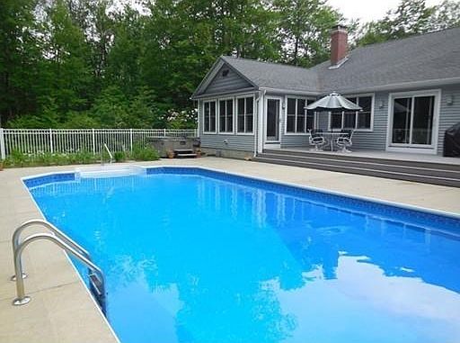 VERY PRIVATE, Executive Ranch on 9.38 acres, bordered by The Brimfield State Forest! Downsizing but don't want to give up quality? This is your perfect oasis, built for entertaining! Amazing designer kitchen with custom, hand made cabinets, blue pearl granite, stainless appliances, recessed lighting, center island w/ prep sink and slate floor. Open floor plan dining area with unique Palapa ceiling, an inviting family room w/ Vermont faced, granite fireplace and lovely wood floor. Desirable screened-in porch and tiled sunroom lead to an amazing 31'x12' composite entertaining deck and fenced 18x36 HEATED POOL, HOT TUB spa & gardens. Master bedroom with spacious tiled master bath, dressing room, convenient laundry room and HUGE walk-in closet. Relaxing media room/bedroom with French doors opens to a cozy office space, pantry and full bath. Partially finished lower level w/ guest room, walk-in closet & plumbed for another 1/2 bath. VERMONT CASTINGS WOOD STOVE & GAS GENERATOR INCUDED!