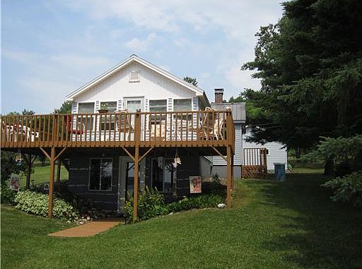 Sweet property!! Cottage that has had an addition added in 1987. Camp was raised up and put on a full foundation with an addition added on. Finished walk out basement. Enclosed sitting porch, deck, 2 car garage, woodstove. 50' water frontage. Must see!