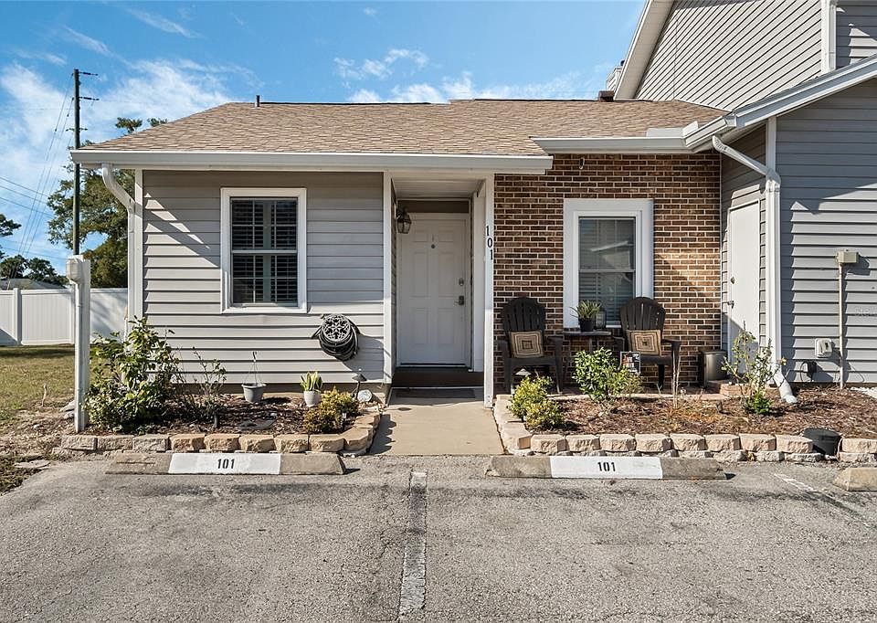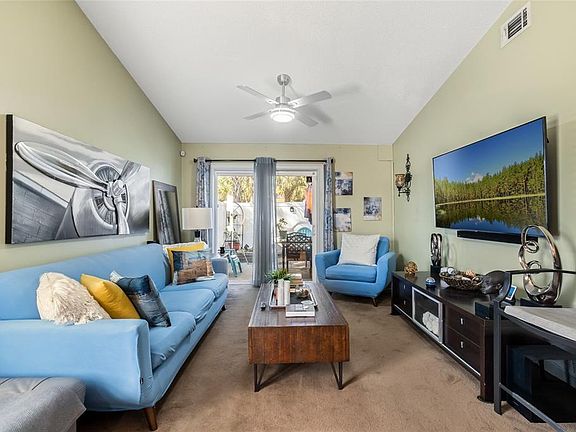 Discover this charming 2-bedroom, 2-bathroom townhome, perfectly designed for comfort and convenience! Boasting over 900 square feet of living space, this open floor plan seamlessly combines the kitchen, dining, and living areas, creating a warm and inviting atmosphere. The home features a master bedroom with elegant French doors leading to the patio, along with a laundry closet and attic access for extra storage. The master bathroom is beautifully tiled and includes a rainfall shower head for a spa-like experience. The spacious second bedroom offers ample room, while the second bathroom impresses with its fully tiled design and relaxing jacuzzi tub with a shower. Additional highlights include stainless steel appliances, crown molding in the kitchen, an active security system, a front door combo lock, a water softener system, a tankless water heater, upgraded double-pane windows with plantation shutters, and an outdoor utility closet. Enjoy outdoor living on the cozy front porch or in the fully fenced backyard patio. The community offers a sparkling pool, and serene nature trail. Located in The Arbors at Hidden Lake, this rare find is centrally situated near Highway 417, the Seminole Towne Center, Seminole State College, and Orlando Sanford International Airport. Take advantage of this rare chance to assume an existing mortgage with an attractive 5.125 interest rate, significantly lower than current market rates and also save on closing costs by using this strategy.