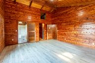 Partial unfinished basementOpen-concept floor planLog-sided home