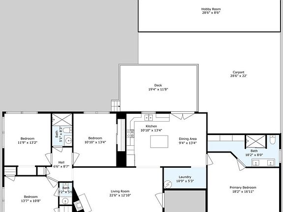 Charming Updated Home on a Spacious Corner Lot with Workshop and expanded outdoor living! Welcome to this beautifully updated 4-bedroom, 2.5-bathroom home offering 1,804 sq ft of living space, plus an additional 230 sq ft attached heated/cooled hobby room —perfect for a home gym, workshop, or extra storage. Nestled on a desirable corner lot, this property boasts thoughtful updates throughout and fantastic outdoor amenities. Step inside to find a bright and inviting interior featuring granite countertops, hardwood and tile flooring, recessed lighting, and a large stone fireplace that anchors the living space. The fully renovated kitchen and freshly updated primary suite make this home truly move-in ready. Enjoy the outdoors from the large deck and patio, partially covered by a spacious breezeway that connects the home to the workshop and provides covered parking tall enough for boats or RVs. The fully fenced backyard includes a garden area, a 10x16 storage shed, and plenty of room for entertaining. All major systems—including HVAC, windows, lighting, kitchen, and bathrooms—have been upgraded within the last 5 years.