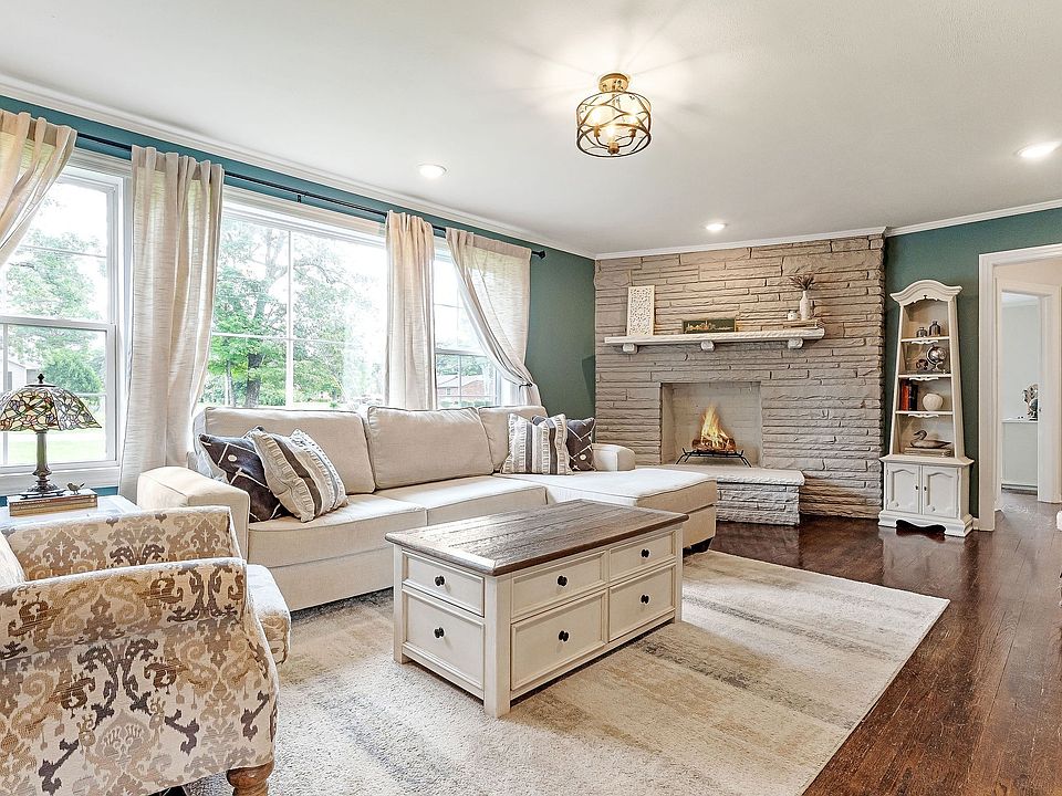 Fully fenced backyardGarden areaLarge stone fireplaceSpacious breezewayFully renovated kitchenLarge deck and patioHardwood and tile flooring