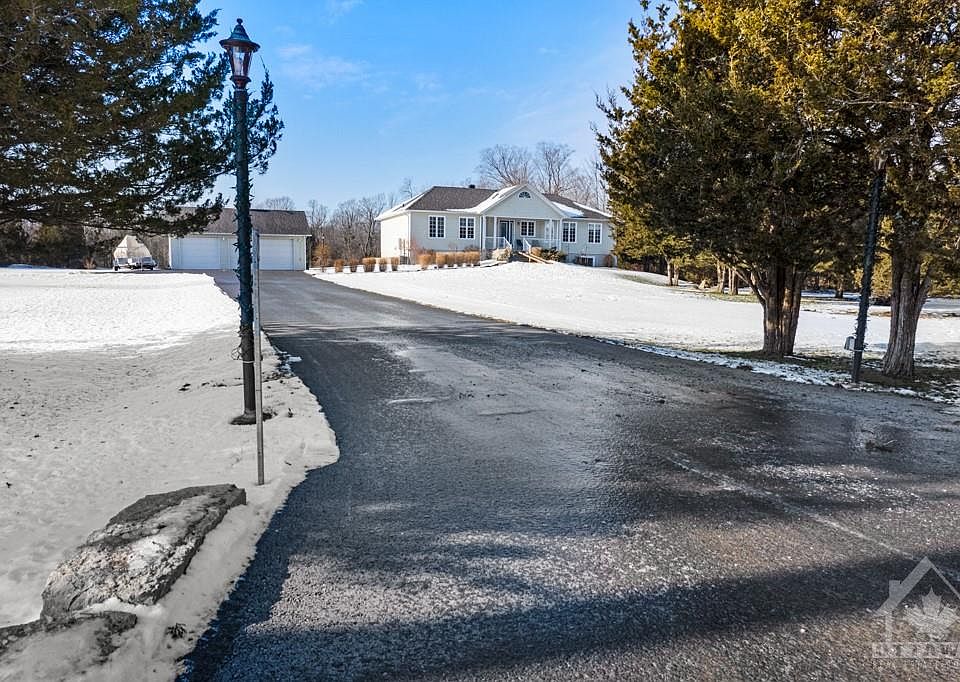 Staying at home all pleasure here. On 1.9 acres in quiet country enclave, lovely bungalow with 3 car garage-workshop. Plus, you have deeded access to Big Rideau Lake for swimming, boating and fishing. Located in Sheldons Landing, this home is minutes from neighbourhood's exclusive swimming beach and dock with boatslips. The 3bed, 2bath bungalow has open sunny floor plan. Front foyer with closet. Living room large windows and corner propane fireplace. Kitchen made for happy gatherings around breakfast bar. Dining area has garden doors to deck. In primary bedroom, garden doors to deck, walk-in closet and brand new ensuite with jet soaker tub. Upgraded main bathroom quartz vanity, glass shower and laundry area. Oversized deck has sophisticated awning with sensors. Detached insulated garage with 125amps and propane heater. Amazing Bunkie or garden shed. Generac generator. Curbside pickup. Cell service. Hi-speed (Fibreoptic available). Assc fee $200/yr for shared lakefront. 5 mins Portland.