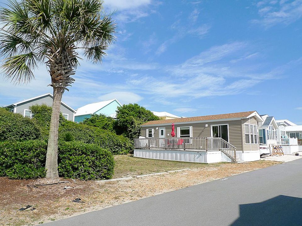 Located in the peaceful, gated Boardwalk RV Park in Emerald Isle, this 2020 Forest River fulfills all the dreams you've ever had for the ultimate beach getaway. Boardwalk RV Park is open year round so enjoy your slice of paradise on weekends or fulfill the dream of year round living at the beach. Situated on a corner lot with an open grassy area adjacent to the unit, this Park Model RV has a fabulous deck where you can grill, entertain friends and enjoy a gorgeous sunset. Tastefully decorated deck furniture including a new gas grill, dining table, chairs and umbrella. There is ample room to add an outdoor shower, deck box for storage as well as a fire pit for those occasional chilly nights. Additional storage space under the deck can be created by adding a door or two to the underskirting. Convenient rear door in addition to the sliding patio door. Low maintenance rock driveway. 2 ton Goodman AC/Heat Pump located behind the unit. Inside, this unit looks brand new and has been meticulously maintained! Vaulted ceilings give the home a spacious and airy feeling. Large windows throughout allow lots of natural light keeping the place bright and cheery. Low maintenance flooring throughout makes it super easy to clean sandy floors. Queen sized sleeper sofa. You are only limited by your imagination and this open floor plan can easily be transformed into your personal vision of an idyllic coastal cottage. WASHER/DRYER already installed for your comfort and convenience. Adjacent to the washer/dryer is a separate pantry closet. Gas stove. Everything in the pictures convey and comes complete with a starter set of dishes/utensils, sheets/towels so truly move in ready! The bedroom has a queen sized mattress….the bed is on risers so plenty of storage room underneath. Dual mirrored closets, built-in drawers underneath and set of drawers and TV alongside. Upper cabinets above the night stands or a shelf over the window could easily be added for additional storage space. Bath includes tub/shower combination (with two seats), vanity/sink, medicine chest, linen closet and toilet. Lot lease includes basic cable, maintenance of the common areas, and trash. 2022 annual lot rent is $5700. Transfer fee of $4000 is payable to the park owner at closing. Park Model RV's are not considered to be real property in the state of NC so you do not pay property taxes like you would on a stick built home. Park Model RV's are titled by the Division of Motor Vehicles and you pay an annual personal property tax just like you do for a car. Per the lease you are NOT allowed to rent/sublease the unit. Animals are allowed. Max 2 dogs per unit.