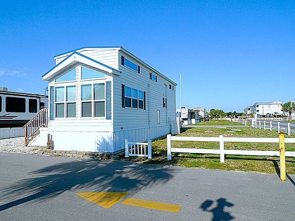 Contact Joanne Flick at 910-787-2160 or email joanneflick1@gmail.com for more information about this property. The $5900 annual lot rent is paid through 5/31/24 so you won't have to pay for lot rent till then which is a fantastic savings! This 2020 Canterbury Park Model RV with 2 super lofts is located in the Boardwalk RV Park, a private, gated oceanfront community in Emerald Isle, NC. Just steps to the private beach entrance accessible only to residents of the Boardwalk RV Park. Located just a few blocks away from the Emerald Isle bridge, this prime location allows you to avoid busy island traffic but is still conveniently located within a mile of restaurants, shops, a movie theatre, putt putt golf, walking/biking trail and giant water slide attraction for the kids. This home is perfect for year-round living or simply as your weekend beach retreat to get away from the world. Located on a rare corner lot adjacent to an open area that will not be built on, this unit is beautiful inside and out, has been meticulously maintained and boasts the tallest lofts available in the RV industry. This unit also has room for 2 vehicles plus a golf cart….very rare for an RV park lot. The exterior features a huge oversized deck with privacy panels where you can take in the sunset while you grill and entertain friends. Durable, polywood deck furniture including four chairs, 2 side tables, grill, sun shade and large Rubbermaid storage chest in the driveway convey with the unit. There is even room to add a nice fire pit for those occasional chilly nights. An enclosed shower on deck has a separate water cut off. An attached awning over the patio door shields you from the rain. Sturdy metal roof protects the unit in high winds. Easy to install numbered plywood hurricane panels for all windows including the patio door. Inside, a high cathedral ceiling in the living room gives the home a spacious and airy feeling. Large windows throughout allow lots of natural light keeping the place bright and cheery. The patio door, transom above and two upper front windows have been tinted to reduce glare and AC costs. Beautiful white coastal beadboard trim in the living room. High quality, low maintenance luxury vinyl throughout makes cleaning sandy floors a breeze. The built in entertainment unit includes a electric fireplace, sound bar and flat panel TV. Energy efficient Mitsubishi ductless inverter AC/Heat system has 3 individual units…1 in the LR, 1 in the bedroom and 1 in the loft area. Best of all, the units in the LR and loft drain moisture to the outside of the unit, not inside the wall like most inverter units. The hallway leading to the bedroom has 2 pantry closets and a washer/dryer. The kitchen has white coastal bead board style cabinets, GE stainless appliances including a gas range, L shaped breakfast bar with pop up charging station, 4 swivel adjustable height stools and beautiful backsplash. The tranquil bedroom at the rear of the unit has a queen size lift bed with convenient storage underneath, pier unit behind the bed with 2 built in night stands and overhead cabinets for extra storage. Wall unit with two closets to hang clothes in addition to a built in set of drawers below and between the closets. Upstairs, there are two lofts divided by a set of stairs for privacy. Canterbury manufactures the tallest lofts of any RV manufacturer and both lofts are oversized as well. Each loft has a built in closet and storage drawer. There is also a double closet separating the 2 lofts. All exterior and interior furnishings seen in the pictures convey with the unit. $6000 transfer fee payable to the park owner is due the day the lot lease transfers. Lot lease includes basic cable, maintenance of the common areas and trash. Per the Boardwalk RV Park Lease you are NOT allowed to rent out or sublease the unit. Park is open full time year round.