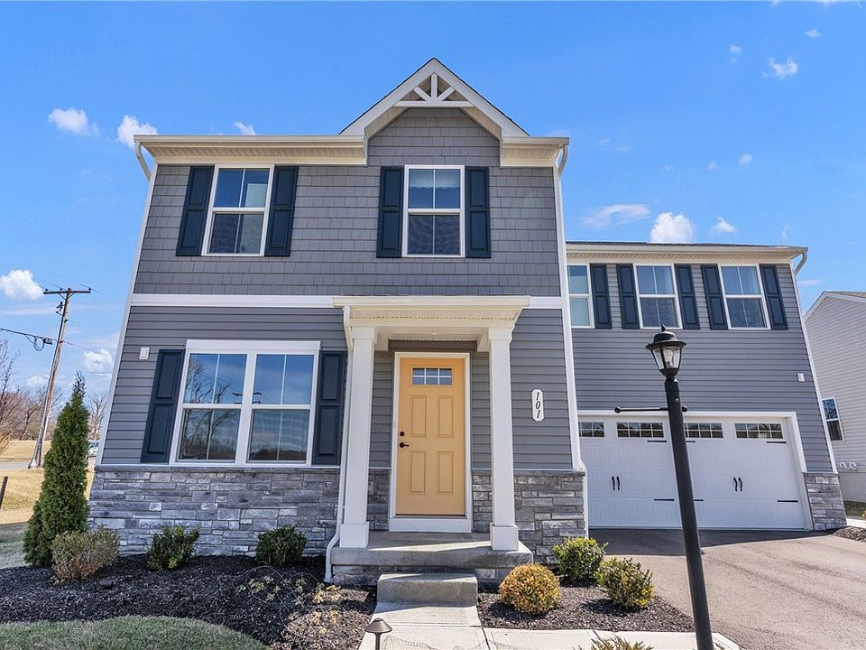 Conveniently located in Butler Township's newly developed Highfield Trails, this charming two-story vinyl colonial offers 4 bedrooms and 2.5 baths.The main floor welcomes you w/ a warm & inviting color palette,featuring rich caramel toned flooring that flows seamlessly into the open dining &kitchen areas perfect for modern living.The kitchen is a cook's dream showcasing dark cabinetry paired w/ light granite countertops an island w/ built-in electric & a pantry for extra storage. A full glass door opens to a 15x13 deck, ideal for relaxing & entertaining. A powder room completes the main floor.Upstairs, the primary suite is a retreat in soothing gray tones, a light & airy en-suite bathroom w/ a dark charcoal-accented vanity.The laundry room is conveniently located on the 2nd fl along w/ 3 additional bedrooms.This home also features a full basement & a 2 stall attached garage providing ample space for storage & future projects. Move right in & start creating memories.