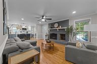 Rear deckGleaming hardwood floorsCorner lotLow-maintenance landscaped corner lotTerrazzo-style solid surface countertopsStylish tile backsplashBuilt-in wine cooler