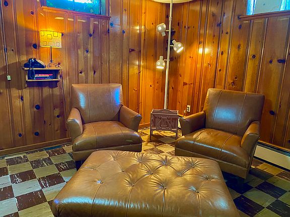 Are you a fan of mid-century design? This is one of the most unique living spaces in the area. 1950s era basement apartment complete with original knotty pine paneling, Youngstown steel kitchen cabinets with red countertops and original yellow and black tiled bathroom. This large, approximately 1500 sq. ft. apartment includes a sprawling great room with a massive Bedford stone fireplace (non functional) with full stone mantle and original sconce lights, as well as four built in book shelves and cabinets. The large eat-in kitchen has a full size refrigerator, electric stove and endless cabinets and counter space with built in cutting board. Plus the original full size, double, enameled sink. The bathroom features a full size walk-in shower. Also includes one large bedroom and large laundry area with full size washer and dryer. This basement has very high ceilings, nearly 8 feet tall, and numerous oversized windows for an open and airy feel. Rent includes all utilities (gas, electric, water and trash) except internet. Apartment has its own separate and private entrance.