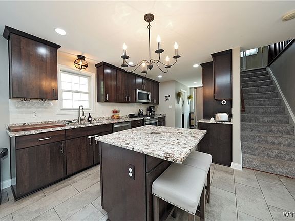 Welcome to your dream home! This stunning 2 story contemporary colonial has a beautiful modern kitchen w/an efficient layout-features bi-level island, corian counter top, recessed lighting, stainless steel appliances (2020) & separate eating area. Step outside from the sliding glass door to a concrete patio, fire pit perfect for entertaining & fully fenced yard. Spacious living ideal for relaxation. Good size dining room has a tray ceiling. The upstairs has 3 bedrooms & 2 full baths. The lovely mst bedroom w/cathedral ceiling, half moon window, walk-in closet & full bath. Full basement is partially finished, separate laundry area, glass block windows & sump pump. Additional features include crown molding, laminate floors, carpeting 2nd fl, surround sound-noise proof, A/C, furnace 2021, on demand hot water, 2.5 detached garage & concrete driveway. Close all conveniences. Offers due Thursday, August 22nd @ 6pm.
