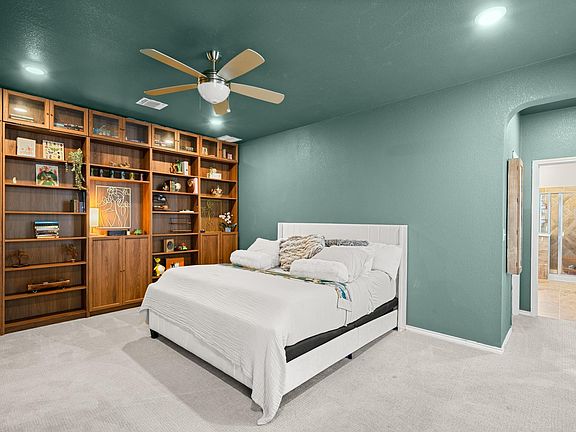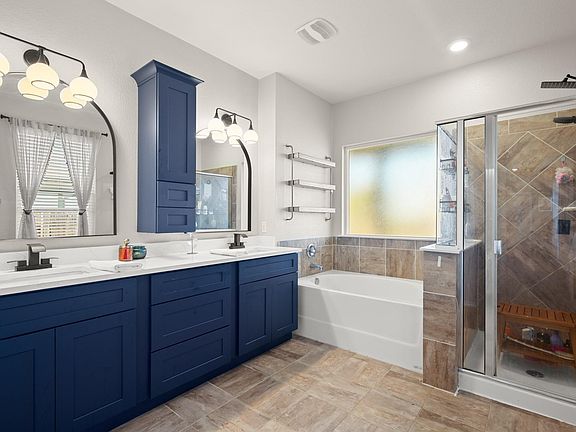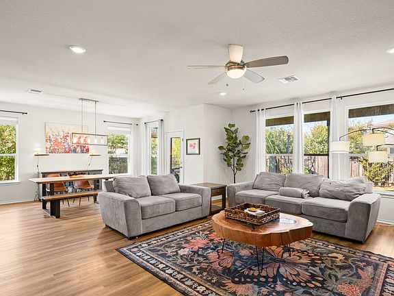 Enchanting and spacious, this beautiful home is nestled on a corner lot in the highly sought-after Morningstar community. The bright and airy living area is filled with natural light, creating a chic and welcoming atmosphere. Your living room opens seamlessly into your gourmet kitchen. The kitchen is a chef’s delight, offering ample counter space, high-quality finishes, and a seamless flow for entertaining. Your stunning kitchen provides an abundance of counter and cabinet space. You have a peninsula counter and a breakfast bar with wood accents. A stylish tile backsplash, sile stone countertops, stainless steel appliances, a gas cooktop stove, a built-in microwave, and a breakfast area. French doors lead you to a dedicated office space with industrial-style shelves. Your primary suite is spacious, serene, and perfect for recharging. It features a stunning built-in storage system with built-in shelves and cabinets. Ideal for displaying or storing your treasures. You have a walk-in closet in the bedroom. Your en-suite has a water closet, a striking cobalt-colored double vanity, a walk-in shower, a soaking tub, and a second walk-in closet. Your secondary bedrooms are generously sized. Each room has a walk-in closet. You have a secondary bathroom with an extended single vanity and a tub/shower combination. Step outside to your backyard retreat. You have an expansive covered patio which spans the length of the house. You have a garden and a spacious backyard. The address is in Georgetown, a coveted area of Liberty Hill ISD. Great location! Close to main roads, shopping, and so much more.