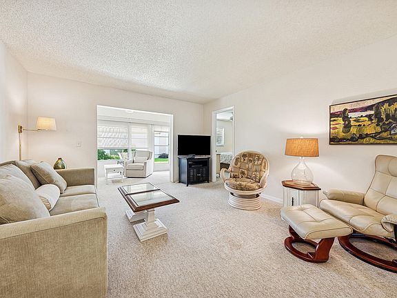 Ideally located within walking distance to shopping, banking, FREE PAR 3 Golf course, Community pool and clubhouse. Minutes to I95 and Ocean Beaches. This lovely 2Br/2Ba with glass enclosed porch is vacant for quick close. Back patio has side view of Leisure Lake. Nice quiet complex but yet close to everything. A/C replaced 2022, Electrical Panel replaced 2019, Water Heater 2020. Paid up recreation lease in full. Furn negotiable direct with owner. No Pets, no Leasing for 2 years. A Gem.