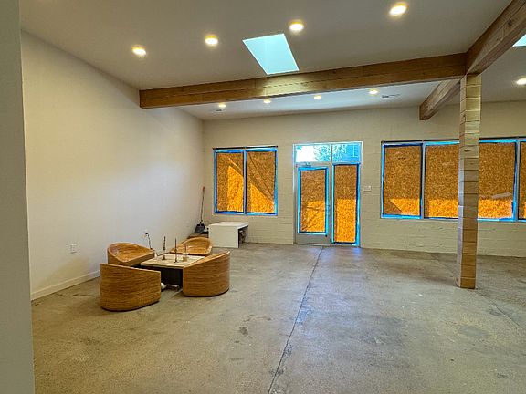 Front Unit (1,400 sq ft $2,500/month): Expansive open floor plan with skylights, high ceilings, large windows, and a kitchenette perfect for a creative studio, home workspace, or open-concept living area.