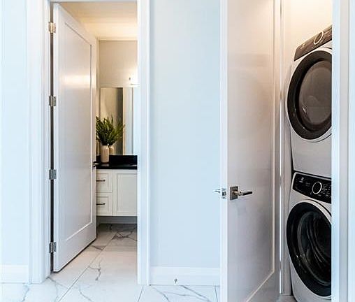 Welcome to The Martin, one of 101 Locke's Largest Floor Plans with 918 sq. ft. of Luxury Living Space, with an additional 545 sq. ft. of Personal, Private Outdoor Space, the largest balcony in the entire building! This 2 Bedroom, 2 Full Bathroom unit includes 1 Underground Parking spot & a large Storage Locker. With N/E Exposure and Floor to Ceiling windows, you get the perfect amount of natural light. Upgraded with matte large format tiles, ceiling height kitchen cupboards with glass display cabinets & a large island, quartz countertops, coffered bedroom ceilings with hardwood floors, custom shower glass door, and upgraded trim & door package, you can feel the quality of finishings through-out. Both Bedrooms and livingroom have access to your large, wrap-around balcony, with loads of space for multiple seating areas. Skirted with a gorgeous concrete railing, you'll have privacy from the street and beautiful sunsrise views. The building's amenities are just an added bonus to this unit, with a gorgeous rooftop lounge and bar with panoramic city views, TV's, ping-pong table, fully-equipped gym, sauna, outdoor pilates deck, and a large outdoor patio with gas fireplace, BBQ's, high tops, dining tables and plenty of comfy seating options. Main floor amenities include a secured bicycle room and yes, a dog wash! Make Unit 312 Your Home Today!