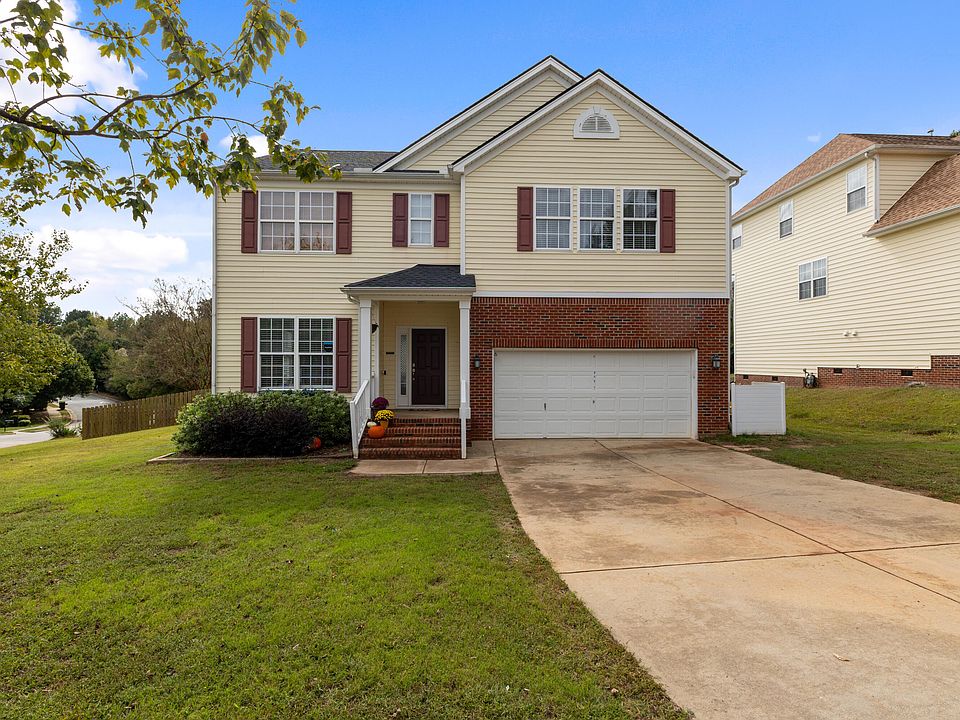 Assumable 3% FHA Loan!! 4-bedroom, 2.5-bath with over 2700 sq ft on a desirable corner lot in golf community, Eagle Ridge. Roof replaced in 2021. Sellers offering a $10,000 credit to use toward updates, upgrades, or closing costs. Make your own design choices! The property is located just minutes from I-540 and only 11 miles from downtown Raleigh. The home features an open floor plan with a spacious family room that flows seamlessly into the kitchen. The kitchen boasts updated lighting, stainless steel appliances (2021), a large walk-in pantry, and easy access to the laundry room and two-car garage. A versatile flex room on the main floor can serve as a home office, dining room, or additional living space. Upstairs, you'll find four generously sized bedrooms, each with ample walk-in closet space. Don't miss the primary bedroom overlooking the backyard with huge ensuite bathroom and even larger closet. Enjoy outdoor living in the fully fenced backyard with a deck,. The neighborhood is the real gem: enjoy pool, tennis and pickleball courts, playground, on-site restaurant, and a buzzing social committee. Golf membership is optional. Reach out today to schedule a showing!