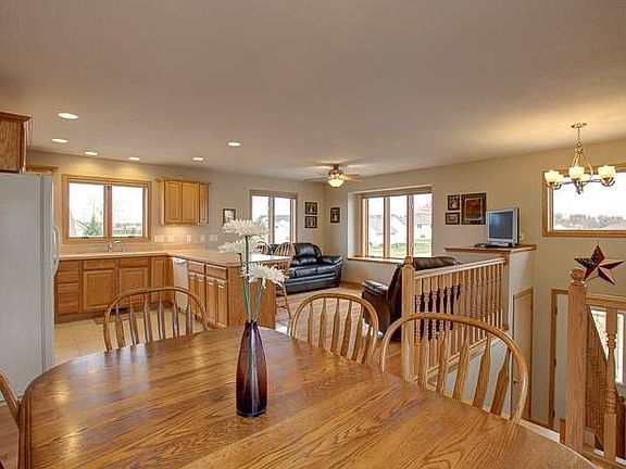 This 4 bedroom, 2 bath home offers an open feel and trend-setting floor plan unlike most other split-level homes you will see. Enjoy the solid 3/4 inch oak hardwood and ceramic tile flooring throughout the living, dining, kitchen and bathroom areas on the main floor. Both bedrooms on the main, as well as all carpeted areas in the lower level of the home, boast stain-master carpeting. Take in the natural oak woodwork throughout the home, along with the Marvin Integrity windows, and Taylor Steel entry doors, all of which provide energy efficiency for this well-constructed home. An abundance of natural light enters into the lower level living and bedroom areas. The game room could easily be converted to a 5th bedroom by simply adding a doorway. The exterior offers a large corner lot with landscaping around the entire house, 30-year Certainteed shingles, and a Trex and Cedar deck strategically built to ensure no view of the city streets. The driveway allows for a bonus off-street parking slab. So many extras including under cabinet lighting, integrated under mount sinks, 200 amp electrical service, large hallway pantry, and high-efficiency furnace and air conditioner with air-to-air exchanger. All major appliances are included in the sale and quick possession could be made available. Fall in love with your new home in this desirable hilltop location today!