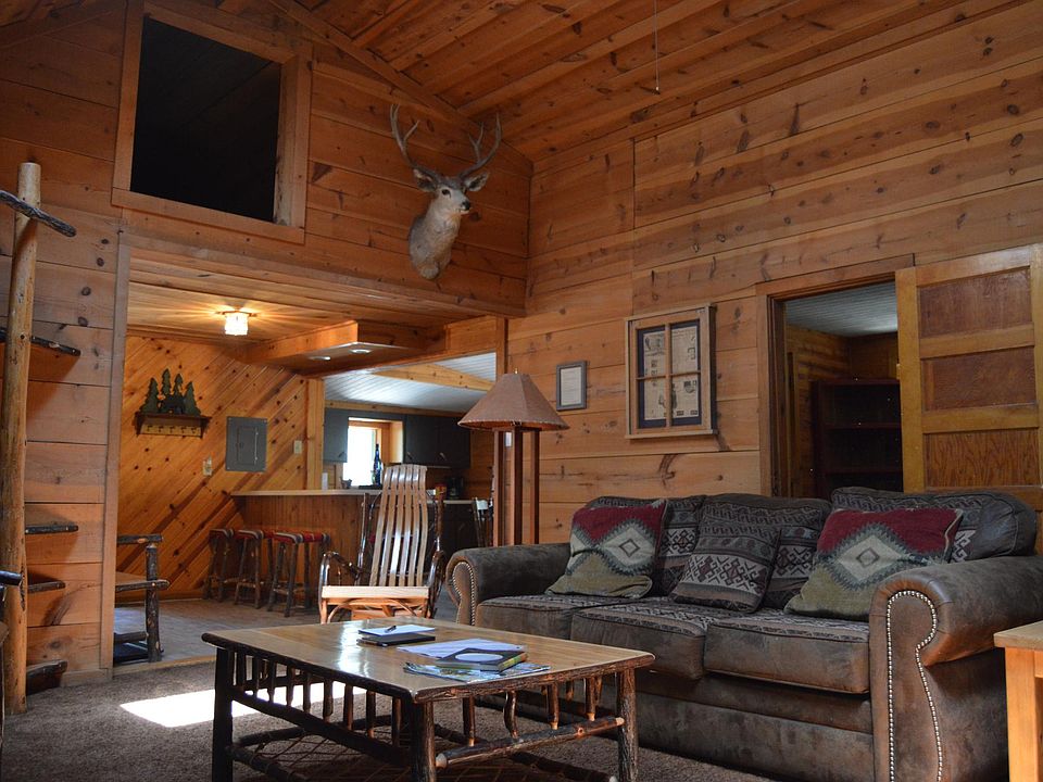 NIGHTLY RENTAL. Little Bear Cabin offers a hot tub and a deck with an awesome view of the tall pines in Upper Canyon. The large cabin offers great accommodations for 6 people. Cabin has refrigerated air, central heating, and a wood burning chimney. It is composed of 2 separate bedrooms and 2 bathrooms. Each bedroom has a cozy king size and the loft has 2 twins. A fully equipped eat-in kitchen. There are 4 steps up to the cabin and parking for 2 vehicles. We encourage chains or 4 wheel drive in winter months. Nightly Rental... Nightly rental