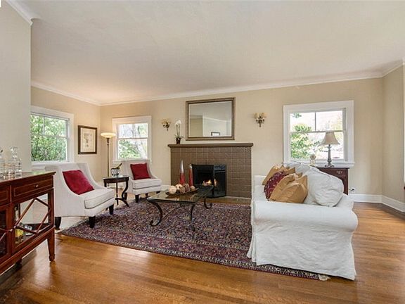 Stately Traditional on a quiet, tree-lined street. Inviting Entry Hall, grand Living Room and spacious Formal Dining Room. Updated Kitchen, Breakfast Room, 4 upstairs Bedrooms, 2+ updated Baths, Den and Rumpus. Hardwood floors, Level Yard with Deck. Loads of storage. Convenient to everything..
