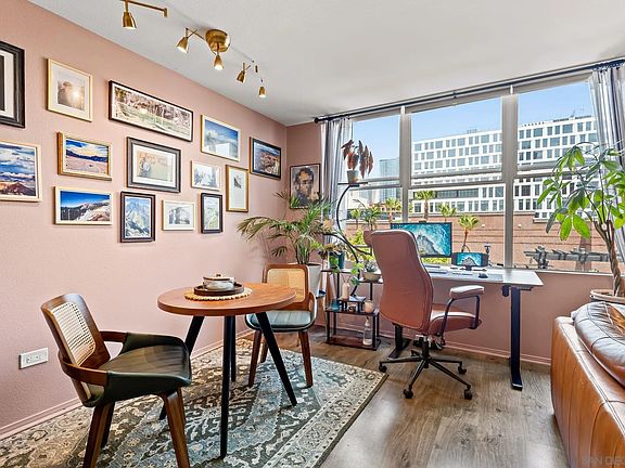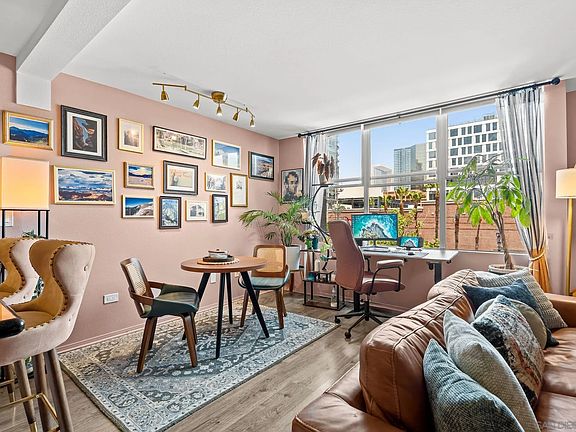 Welcome to your chic, spacious Marina District studio straight out of a magazine spread. Perfectly positioned in the highly sought-after Marina District of Downtown San Diego, this gem puts you at the center of it all. With over 500 square feet of stylish living space, this home offers everything you need to embrace vibrant city living. The thoughtfully designed kitchen boasts stainless steel appliances, including refrigerator, microwave, dishwasher, AND the ultimate urban luxury: a newer Samsung washer and dryer IN-UNIT. Also featured is a spacious custom closet, just shy of a walk-in, adding both style and functionality. This hidden gem is exactly what you’ve been looking for. You’re less than 10 blocks from the iconic Padres Stadium (Petco Park) and within walking distance to an endless array of restaurants, bars, coffee shops, fitness studios, shopping, entertainment, Seaport Village, the Convention Center, and more. The gorgeous Atria community offers a collection of beautiful and convenient amenities, including a 24-hour fitness center, on-site security, a professional conference room, and a stunning 4th-floor terrace complete with lounge seating, a BBQ area, and a cozy, atmospheric fireplace, all set against breathtaking views of the Downtown San Diego skyline. Additional features include a designated bike storage area and a secure package room for your convenience. FHA and VA approved! VA ASSUMABLE LOAN OPPORTUNITY: LOCK IN 2.875%!