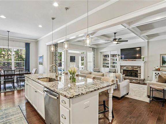 Set on two manicured acres in the prestigious Birmingham Estates community, this striking residence captures refined Southern living with modern flair. Featuring four bedrooms and three-and-a-half baths, the home blends effortless everyday comfort with luxury outdoor living. From the welcoming front porch to the sparkling sport pool and hot tub surrounded by marble decking, every space is designed for connection, relaxation, and entertaining in style. The open-concept floor plan showcases gleaming hardwood floors, abundant natural light, and thoughtful architectural details throughout. The primary suite on the main level provides a peaceful retreat with a spa-inspired bath and generous walk-in closet. The heart of the home centers around the warm fireside great room and gourmet kitchen— ideal for entertaining or everyday living—with an oversized island, custom cabinetry, and a casual dining area overlooking the backyard oasis. Upstairs, you’ll find spacious secondary bedrooms and an expansive recreation room, ideal for movie nights, gaming, or guest accommodations. STORAGE IS ABUNDANT throughout, including a three-car garage, an accessible 12' x 14' temperature-controlled storage room above the garage, and well-organized closets. The covered patio with fireplace and TV makes entertaining effortless year-round, while the manicured lawn offers plenty of space for play and outdoor gatherings. Situated in one of Cherokee County’s most desirable neighborhoods—known for its large estate lots, scenic setting, and charming mail pavilion—this home combines privacy, style, and convenience, just minutes from Milton, Alpharetta, and Crabapple.