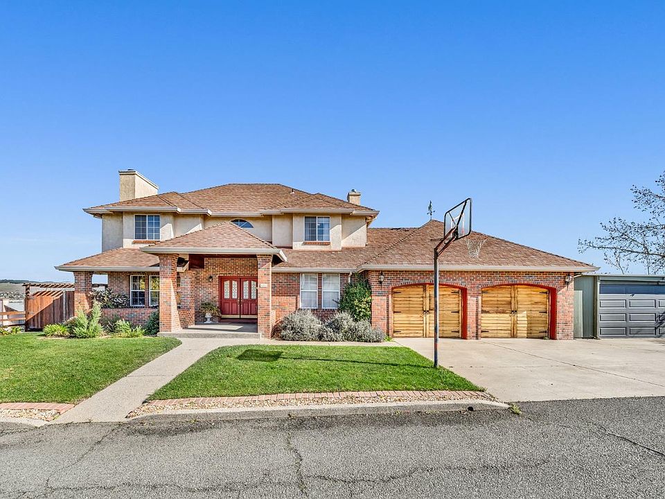 Panoramic View custom built by seller freshly prepped and market ready! This dramatic beauty has been approached by film crews for various media. Hand laid brick across front shows pride of ownership from front curb to back yards. Grand curved wood staircase at formal marble floor entry with soaring ceiling. Main level bedroom with beautiful wood parquet floors is attached to full bathroom set apart for privacy. Formal living with wood burning marble and carved wood hearth formal fireplace and formal dining room with views. Remodeled view kitchen has Frigidaire subzero style, quartz counters, panoramic view from dining into family room with wood stove on brick hearth. Second level with 3 bedrooms, 2 baths includes primary suite with formal fireplace, view balcony, new trending style soaking tub and new porcelain tile floors and walls at bath. Back yard is meticulously appointed for intimate gatherings or play and relaxation. Generous 3+car driveway, 2 car garage PLUS 2 car added storage in workshop for total up to 4 cars covered for car buffs. Easy access to Interstate 80 for commutes in all directions, convenient location for access to all services, hospitals nearby. Set apart on private drive. Property is comprised of 2 parcels, 0069-021-130 and 0069-021-140 per tax record