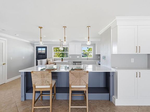 One or more photo(s) has been virtually staged. Welcome to this beautifully renovated three-bedroom, two-bathroom pool home in the desirable Dunedin Shores community. With a brand-new 2025 AC system, new flooring, kitchen, and bathroom updates, all located just 7 minutes from Downtown Dunedin. Sitting on a corner lot near the Pinellas Trail and just 5 minutes to the Dunedin Causeway, this home offers a true Florida lifestyle with modern upgrades. Enjoy pulling up to the new landscaping, while the front porch provides a perfect spot to enjoy the coastal breeze. Step inside to find a bright and open floor plan with new luxury vinyl plank flooring throughout, stone tile in the kitchen, crown molding, updated fans, and premium light fixtures. The spacious kitchen, dining, and living room combo is perfect for entertaining, featuring a working wood-burning fireplace and abundant natural light. The updated kitchen showcases quartz countertops, a farmhouse sink, shaker-style soft-close cabinets and drawers, LG stainless steel appliances, pendant lighting, and a breakfast bar for casual dining, along with a built-in kitchen booth/chef’s table for extra seating. The primary suite has been beautifully renovated with new tile, cabinets, and finishes in the ensuite bathroom, plus a walk-in closet. The second bedroom also features a walk-in closet, providing ample storage space. Every detail has been carefully curated, including higher-end doors and hardware throughout. Outside, a sprinkler system with a new controller and a sparkling pool perfect for relaxing or entertaining. The deck area is ideal for grilling and outdoor dining, while the fenced backyard features a serene koi pond for added charm. This move-in-ready home is close to local dining, boutique shops, coffee spots, parks, the Dunedin Golf Club, shopping centers, and the Dunedin Community Center. Come experience all that Dunedin Shores has to offer! Schedule your tour today!
