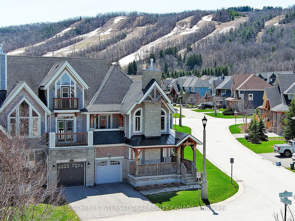 Welcome to the highly sought-after 'Manitou' model in the prestigious Orchard at Craigleith an exceptional end-unit chalet on an oversized corner lot, designed for year-round enjoyment in one of Ontario's most breathtaking four-season destinations. Offering over 3,200 sqft of meticulously finished living space, this 5-bedroom,4-bathroom home seamlessly blends comfort, warmth, & functionality. The open-concept main floor invites natural light through soaring two-storey windows, highlighting the vaulted ceilings, rich hardwood floors, & cozy gas fireplace. The gourmet kitchen features stainless steel appliances, granite counters, & a large centre island perfect for entertaining after a day on the slopes, trails or Bay. The open dining area flows to a covered deck, ideal for summer evenings & fall foliage views. The layout is thoughtfully designed for privacy & relaxation: a spacious primary suite with stunning views of the escarpment sits apart from three additional bedrooms, while the lower level finished in 2022 boasts a ski tuning room, a rec/games room, gym/office space, full bath, & ample storage. The garage provides easy access & plenty of room for gear after a day outdoors. Whether youre carving fresh tracks in winter, hiking & biking in spring, swimming & playing tennis in summer, or enjoying the golden colours of fall, this home puts the magic of every season at your doorstep. Walk to Craigleith, Toronto Ski Clubs, the Village at Blue Mountain, Northwinds Beach or explore nearby golf courses & trail systems. Ownership includes access (for a fee) to the Orchards private pool & clay tennis courts. W/charming post-and-beam detailing, gorgeous views of the ski hills, & an unbeatable location, this turnkey chalet is ready for your family's next chapter of life combining the summer lake life of Muskoka with active slopeside living of the Blue Mountains in under 2 hours from Toronto Airport. (5th Bdrm/gym serves as bedroom in basement but has no window so no egress)