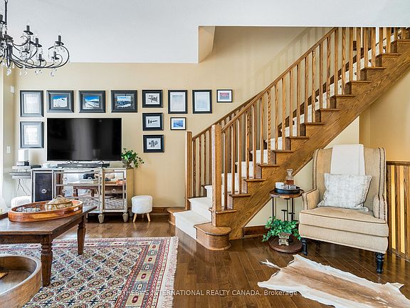 Oversized corner lotOpen-concept main floorSoaring two-storey windowsVaulted ceilingsRich hardwood floorsCozy gas fireplaceGourmet kitchen