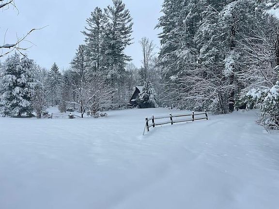 This secluded cabin sits at the entrance to six acres of peaceful woods, offering a cozy retreat with a unique open-concept design. Large covered deck and pond are a stones throw from your your private raised deck off the master bedroom.