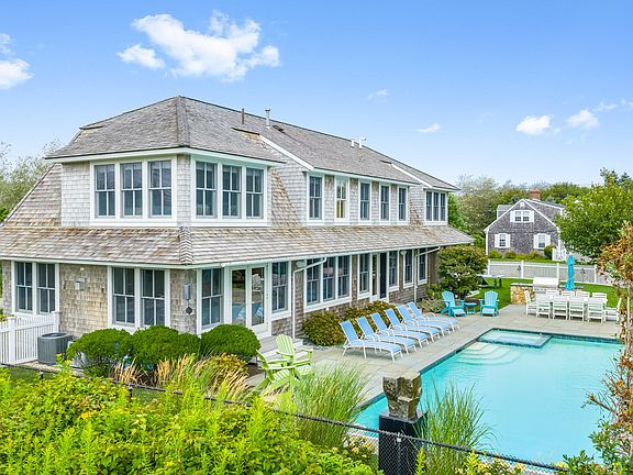 LIGHTHOUSE BEACH - A Nantucket-inspired coastal home designed and built by Polhemus Savery DaSilva, this residence beautifully blends elegance and comfort. The open floor plan showcases oversized windows and soaring ceilings, allowing natural light to pour in and illuminating the stunning views of the swimming pool, spa, outdoor kitchen, patio, gas fire-pit, outdoor shower, and irrigated fenced-in lawn. Ownership includes deeded neighborhood access to Lighthouse Beach. The gourmet kitchen and oversized island seamlessly integrate with the dining room, custom bar, pantry, and wine storage. The inviting living room features a cozy gas fireplace. The fifth bedroom has been thoughtfully transformed into an inspiring study. Ascending to the second floor, you'll discover four wonderfully proportioned bedrooms, each offering distant Atlantic Ocean views, and three stylish full baths. The primary suite is a true retreat, boasting glorious views, a spacious walk-in closet, a dressing room, and an exquisite bathroom and shower. Around the corner is the Outermost Harbor Marina, and the nearby Old Village is the gateway to the start of Chatham's Main Street.