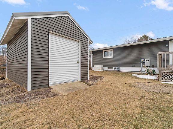 So many updates in the well maintained easy living ranch with spacious yard. Kitchen remodeled and opened to living room in '18. Beautiful grey cabinets and large island, gas range, frig and hood fan that vents to exterior new in '18 also. Wiring to install future dishwasher installed behind cabinet on right side of kitchen sink. Vinyl plank flooring and vaulted ceiling brings it all together. Full bath off kitchen remodeled in '18. Hall bath in '12. Steel roof and 6"gutters in '21. 220 AMP electrical service in garage for future EV charging. Garage work bench stays. House has 200 AMP service panel. Windows - '08. 2 water heaters in '24. One is used as holding tank for Geothermal installed in '08. House generator installed in '22 & services yearly. Windows in '08, Siding in '22. Lv rm ventless fireplace installed in '18. Washer '23, Dryer' 24, Shed resided in '22. baseboard heat not active. Upright & chest freezers stay. Ages are unknown, & not warranted. Storage shelves in storage rm stay, TV's & wall mounts stay, bar stools for fm rm bar stay. Fm Rm sofa stays, CD shelf stays. Surround sound system in basement stays. All window coverings & blinds stay. Seller reserves the right to remove Rhubarb plants in back yard in Spring of '25. Buyers are encouraged to measure sq ft for their own satisfaction. Measurements are not guaranteed or warranted. Buyers are encouraged to measure to their satisfaction. Appliances not warranted.