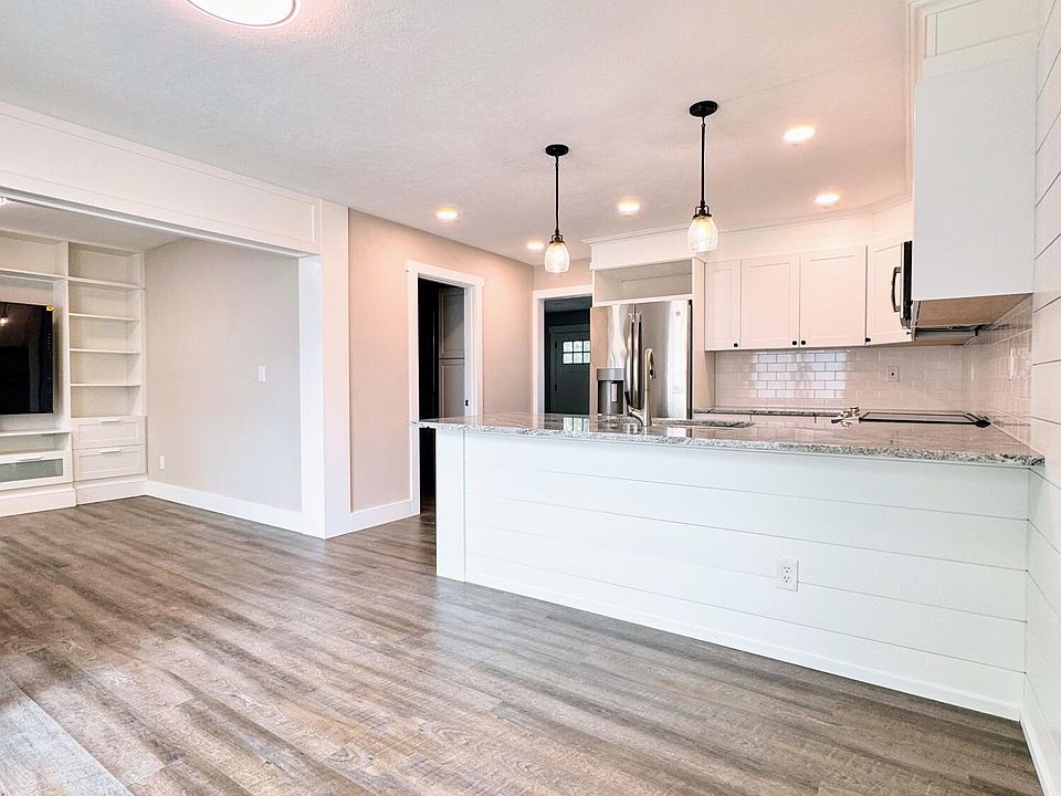 Charming community courtyardSwim in the poolModern livingStunning quartz countertopsBrand-new kitchenCozy tv roomGorgeous built-ins