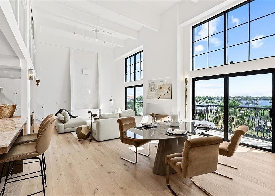WATERFRONT ZEN.New Development-Private Penthouse style Oasis w/17' High Ceilings;Rare Find! This Uber Chic Loft has unobstructed 47' wide open Water and Park Views.Walk to everything Lifestyle! All New Boasting 3 balconies, the finest materials, high-end appliances, chef's custom kitchen w/huge Island, genuine Oak floors, custom cabinets and closets, Impact windows. Turn Key vacation or year round home or Investment-can be leased 2 times a year. 3 Parking spaces on same level,Pets Welcome,24-hr Security, lowest HOA's for comparable buildings WPB.No structural assessments