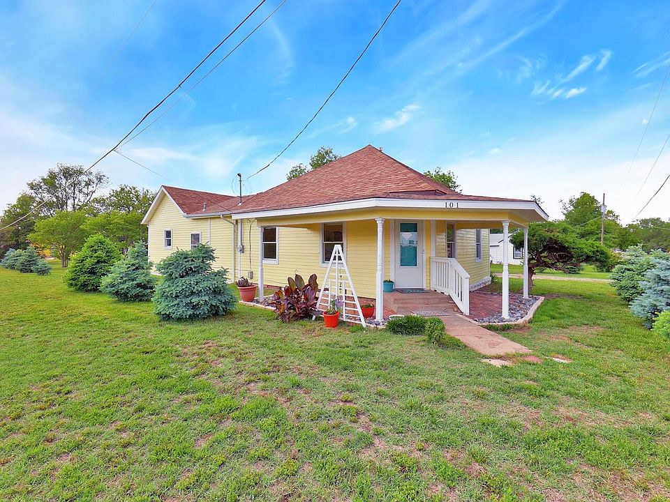 Location, Location, Location!! In the heart of town across the street from the park, splash park, emergency shelter, and Prairie Sunset Goddard Trail Head! Great opportunity on this well loved home that is close to the highway - not too close though. Beautiful hardwood floors and bountiful natural light through the updated windows welcome you in to this farmhouse styled home. Master bedroom with wood floors and ensuite tub/shower bath. Fourth bedroom is currently used for an office. Pass through the dining room to the open family room! Updated fully applianced kitchen with solid surface tops and eating bar. Separate main floor laundry, two more big bedrooms, and fresh new large bathroom completes the interior! Exit through the sunroom to the patio or through the oversized two car garage. Large corner lot may be a great candidate for a shop or whatever the city will allow - no HOA!