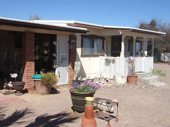 This quaint and curious home in the Why area comes partially furnished, with a whimsical arrangement of plants, trees and colorful pots in the front yard. There is also a small shed on the property, for all your storage needs.