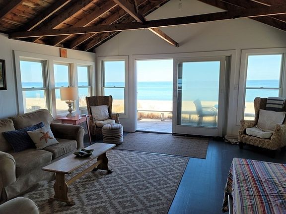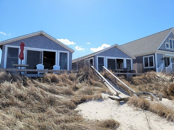 ASKING PRICE IS LITERALLY THE LOT VALUE! NEW CONSTRUCTION BEING BUILT JUST ONE HOUSE OVER WITH MORE TO COME! CURRENTLY NOT ONE, but TWO OCEANFRONT COTTAGES on Cape Cod Bay! Enjoy beautiful, UNOBSTRUCTED VIEWS from the Canal to Provincetown. Sit back and watch AMAZING SUNSETS on your own PRIVATE SANDY BEACH. BRING YOUR IDEAS TO THESE TWO adorable TWO BEDROOM, ONE BATH COTTAGES ON ONE LOT Sitting high in the dunes, EACH COTTAGE CAN BE RENTED SEPARATELY - AT LEAST $6000+- A WEEK IN SEASON WHEN RENTING BOTH INDIVIDUALLY OR SIMPLY RENT BOTH TO ONE TENANT! There is also a FREE STANDING GARAGE offering many possibilities. Electric baseboard to take away the morning chill but Natural gas is connected to both cottages for an easy upgrade. Both have gas ranges! Outdoor shower. Being sold fully furnished! THIS LOCATION IS CONVERTING TO BEAUTIFUL NEW CONSTRUCTION HOMES SO THE INVESTMENT IS A NO BRAINER! Cool family campus if not used for income. Watch the waves roll in and enjoy long strolls!!!