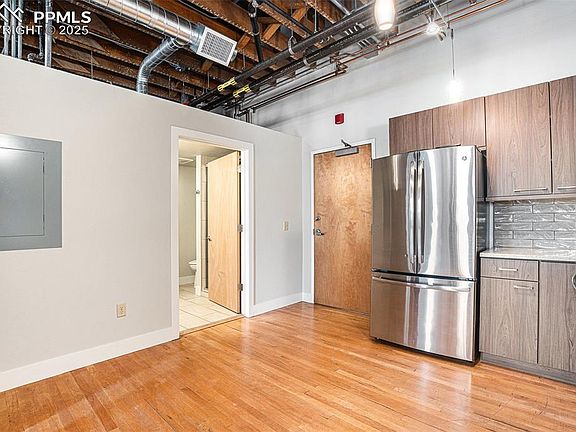 Downtown Colorado Springs loft with stunning Pikes Peak views, located on the 4th floor of the historic Giddings Lofts building. This spacious 1-bedroom, 1-bathroom residence blends historic charm with modern updates, featuring soaring ceilings with exposed trusses, large windows, and abundant natural light. The open floor plan offers flexible living and dining space, while the updated kitchen boasts stainless steel appliances and granite countertops. The bedroom area is tucked away for privacy, and the bathroom includes modern fixtures and ample storage. Enjoy secure building access, elevator service, a reserved parking space, and a storage area. Just outside your door, you’ll find Colorado Springs’ best dining, coffee shops, boutiques, and nightlife, with America the Beautiful Park and the Pikes Peak Greenway Trail minutes away. Perfect as a primary residence, lock-and-leave second home, or investment property in the heart of downtown.