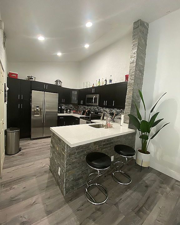 Great location at Courtyards of Plantation Acres . Completely remodeled, new kitchen, floors and bathrooms.. Spacious and comfortable two bedroom two bathroom home. Large kitchen with a laundry closet. Large fenced in patio/deck area with a pond and garden. One of the rooms has independent access from the street. High, vaulted ceilings and large sliding glass windows throughout the house and in the master bedroom provide great lighting. Outside storage room and 2 parking spaces. Community pool, minutes from I-75 and 595. Appliances include washer/dryer.