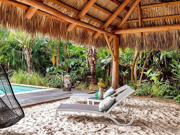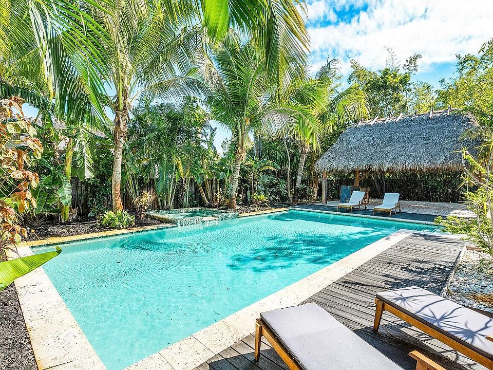 Tucked away in the heart of Delray Beach, this zen oasis awaits. Enjoy your privacy in this beautifully designed residence nestled in the highly-desirable neighborhood of Lake Ida. Bring your boat and your golf-cart, this home has two large driveways with plenty of parking. Upon entering, you will be greeted by a light and bright kitchen featuring a breakfast nook, marble countertops, DCS Stove and Sub-Zero fridge with plenty of storage and ample counter space. Enjoy the expansive lush outdoor living space which features a 20x30 inground pool with attached spa, 500 ft authentic tiki-hut, outdoor shower and plenty of space to soak up the summer sun. An entertainer's dream! Large separate dining and living room areas that overlook the patio and backyard. Spacious primary suite featuring cabana half-bath, private seating area and ample closet space. Enjoy beautiful natural light in the primary bath, which features a separate walk-in closet, frameless glass shower and private side patio with access to backyard and side yard. Hidden-gem and truly a one of a kind property, this home would be the perfect seasonal residence or short term rental property.
