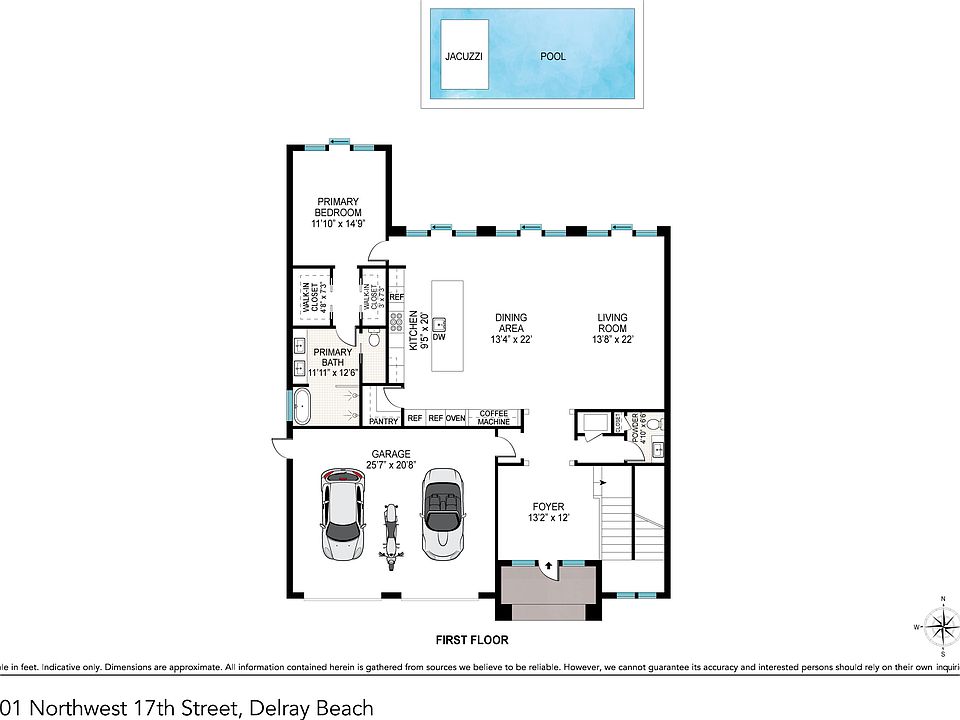 Outdoor living takes center stage with a resort-style pool, jacuzzi, outdoor shower, and covered patio perfect for entertaining. Additional highlights include a powder room on the main floor, 2-car garage, whole-house generator, and a sophisticated mix of wood and porcelain flooring throughout.