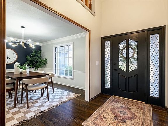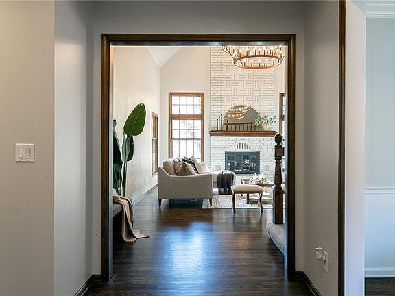 Welcome to this refined retreat in nestled in Claymont North. This 5-bedroom, 4.5-bath residence offers 4,000 square feet of thoughtfully designed living space, blending privacy, sophistication, and convenience with easy access to major highways and the airport. Step inside to soaring vaulted ceilings on the main level with recently installed hardwood flooring throughout. Recent upgrades include a stunning redesigned kitchen with quartz countertops, and a vaulted breakfast area surrounded by windows. Brand new appliances make daily living and entertaining a breeze. The luxurious primary suite features large windows, plush carpet, and a spa-like bath with tall cabinetry, soaker tub, walk-in shower, and his and hers walk-in closets. You will love the setting room between the master bedroom and bath where you can enjoy a cozy book by the fireplace. The expansive lower level is an entertainer’s dream with a gas start fireplace, full wet bar with sink and fridge, suspended garage for workshop and tornado shelter, and ample storage. Two secondary bedrooms offer flexibility and comfort for guests or teens that like to have their own space. Additional highlights include an upstairs loft for a children’s play place or office and two bedrooms with main floor laundry. Just minutes from the charm and amenities of Briarcliff Village—this exceptional home is not to be missed.