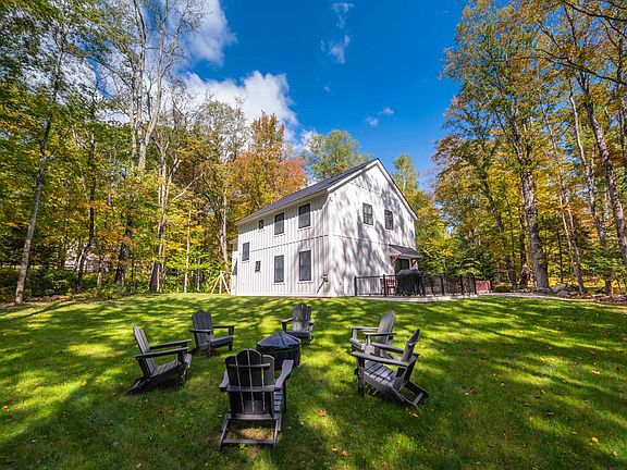 Stunning new construction in the Chimney Hill community just outside the village of Wilmington, and a short drive to both the Mount Snow ski resort, Hermitage Club, and Lake Whitingham. Located on an easily accessible corner lot in the desirable B section at the bottom of the hill with unique double lot size allowing for tremendous expansion potential . This home was built sparing no expense and is turn key luxury ready for the discerning buyer. Perfect floor plan with an open concept living space with high coffered ceilings, great natural light, wide plank white oaks style plank floors, spacious dining area, a custom chefs kitchen with waterfall countertop and stainless appliances, wine cooler and bar area, main floor half bath, mudroom entry with cubbies and closets for gear, and separate laundry room. The upper level features a full primary suite with tiled shower, dual guest rooms, and an additional full bath with tiled shower and double vanity. Air conditioning and radiant heat throughout afford perfect temps and enjoyment no matter the weather. The exterior boasts a large entertaining deck, fire pit with adirondack chairs, and level lawn for play, along with ski chair swing off the large driveway with ample private parking. This also includes use of the tremendous Chimney Hill amenities including clubhouse with indoor and outdoor pools, hot tub, full gym, locker rooms, arcade, theater, tennis and basketball courts, and a la carte services such as plowing and trash.