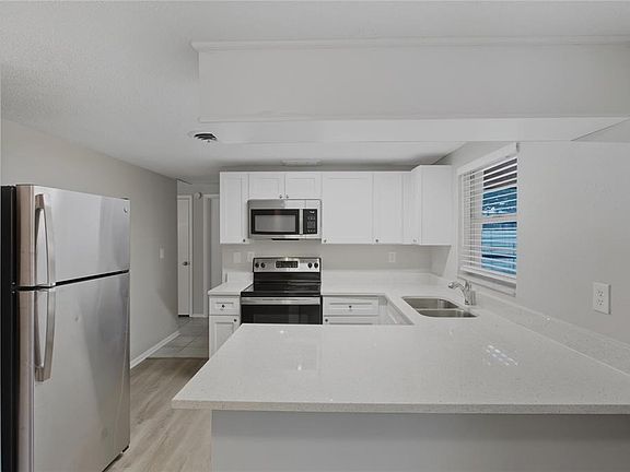 Breakfast barUpdated hall bathroomQuartz countertopsFully finished florida roomUtility spaceBeautiful old oak treeCeiling fans