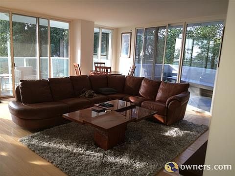 Condominium for sale by owner in Santa Monica, CA 90402. Rare opportunity for a unit in possibly the best Hi-Rise Gated Community in Santa Monica. Enter this unit and light strikes you all over from the floor to ceiling windows. Large living room/kitchen combination area with built in entertainment area. Unique 150 sq ft wooden deck off of the living room for outdoor entertaining and additional large 150 sq ft balcony with partial view of the mountains and ocean. Modern kitchen with built in sub zero refrigerator, dishwasher, wine cooler, 36 inch stove/oven and wine rack. Marble counters and contemporary cabinetry. Hard wood floors lead to and into the bedrooms. The first bedroom has built in desk and closet organizers. Hall bath has marble floors and shower with a pedestal sink. The master suite has abundant closet space with organizers. The master bath has marble floors and shower as well as a spa tub and double sinks. Each bedroom has its own deck area. All rooms have high ceilings. Assigned park