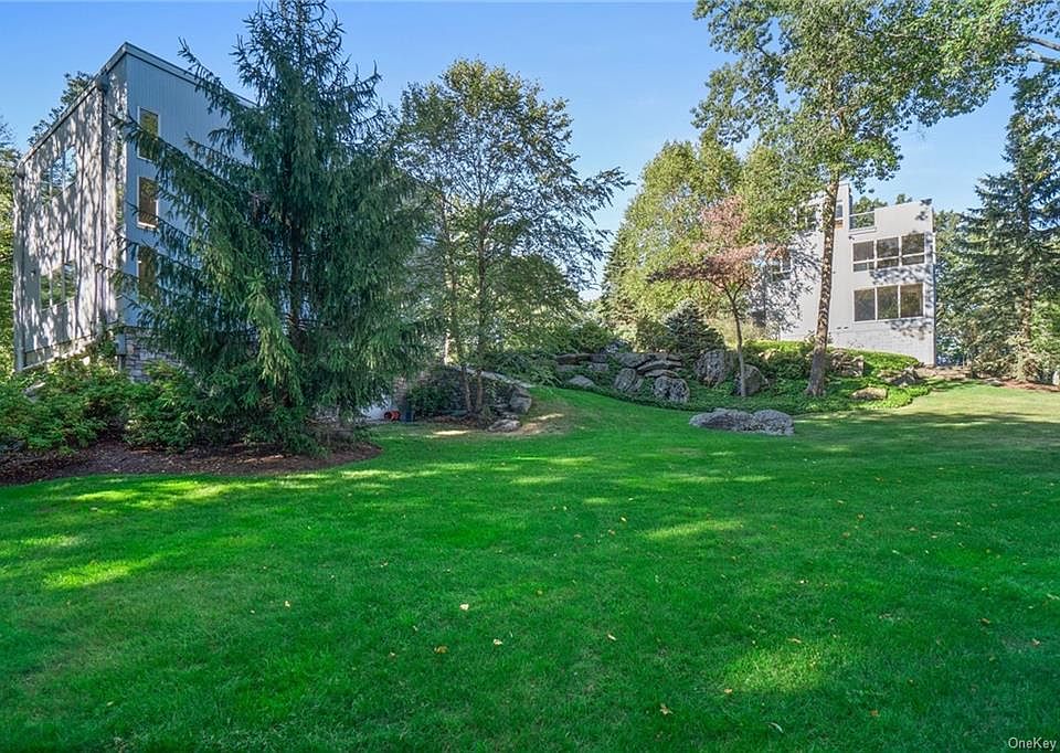 A stunning, modern home with over 4500 sf of living space. Sited on 5 private, hilltop acres with horizon views and winter view of Long Island Sound, the home offers open spaces filled with light and surrounded by nature. The sleek, modern kitchen features maple flooring, 2 Miele dishwashers, 6 burner Wolf range, Sub-Zero refrigerator, trash compactor, Cottonwood cabinetry, and 4-case wine cooler. House features include 2x6 stud construction, 1-3/4" solid core oak veneer doors with FSB German hardware, sink and bathroom hardware by Dornbracht from Germany, Anderson double-glazed windows, oak flooring throughout, and heated tile floors in 3 baths. Immerse yourself in the serene setting, with a roof deck to enjoy the view. Included is approximately 1200 square feet on lower walkout level with guest suite and wine room. The 6+ Car Garage with half bath offers 1,300 sf finished space above suitable for studio, gallery, gym, woodshop ( 220 outlets), etc. Heat and AC on both levels.