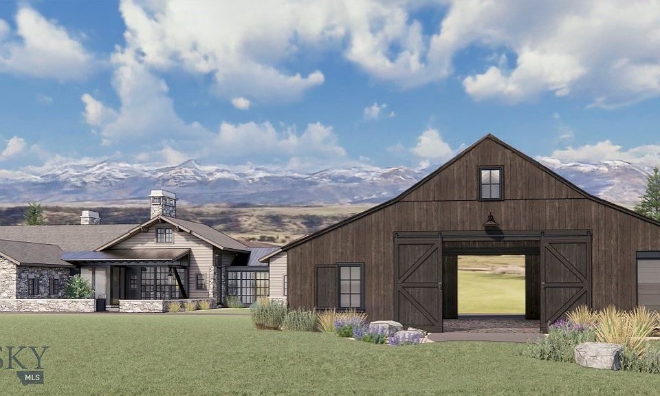 This stunning 3,500 SF Mountain Modern home is set to break ground in September 2025 in Bozeman’s sought-after Sandhill Subdivision. Situated on 2.5 acres on the desirable south side, just 3 minutes to downtown Bozeman, the thoughtfully designed home will blend refined mountain architecture with contemporary comfort—and is available for purchase prior to completion. Featuring 3 spacious bedrooms, a dedicated bunk room, and a seamless indoor-outdoor layout, this home is perfectly positioned to take in sweeping views of the Bridger and Gallatin Mountain ranges. The design showcases organic accents with natural stone and wood siding —capturing the timeless spirit of Montana with a fresh, modern twist. The plan also includes a custom-designed pull-through barn with an additional 548+/- SF of living space, including a private office with 3/4 bathroom, spacious workout room, and 2 additional garage bays, creating a flexible space for work, storage, and recreation. Inside, expect cozy open-concept living, vaulted ceilings, a dramatic fireplace, and oversized windows that frame the landscape and flood the home with natural light. Located just 3 minutes from downtown Bozeman yet nestled in the quiet hills of the country, this is an opportunity to own a brand-new home in one of the area’s most exclusive settings. Buyers who secure the property early enough may have input on select finishes. Experience elevated mountain living—where thoughtful design, privacy, and organic beauty come together in the heart of southwest Montana.