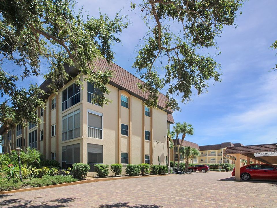 Escape to your serene, sun-drenched retreat in the heart of Venice where beachside bliss meets downtown convenience. This stunning 2-bedroom, 2-bathroom condo is an idyllic sanctuary, perfectly designed for those seeking a seasonal hideaway in the prestigious Venice Park community, exclusively for those 55 and over. Revel in a coastal-inspired living space that boasts a breezy open floor plan, awash with natural light, and accented by a delightful lanai that offers picturesque views of the sparkling community pool. The primary suite serves as your personal haven, complete with an en-suite bath and an expansive walk-in closet. The guest bedroom is equally inviting, with plenty of space for visitors. Charming and updated, this condo epitomizes island living without sacrificing convenience. Just a leisurely two-block stroll takes you to the historic and vibrant heart of Downtown Venice. Indulge in the local cuisine, shop to your heart's content, or partake in the weekly Venice Farmers Market. Nature enthusiasts will appreciate the proximity to Hecksher Park, while Venice Public Beach beckons those who yearn for the sand between their toes and the soothing rhythm of the Gulf waves. This peaceful retreat isn't just a home; it's a lifestyle choice. From the lush, mature landscaping that envelopes the community to the comfort of your own assigned parking space, every detail caters to a life of ease and refinement. Immerse yourself in the coastal charm and community spirit of Venice Park, where every sunset is a celebration, and every day feels like a holiday.