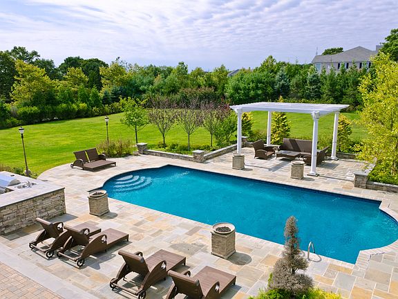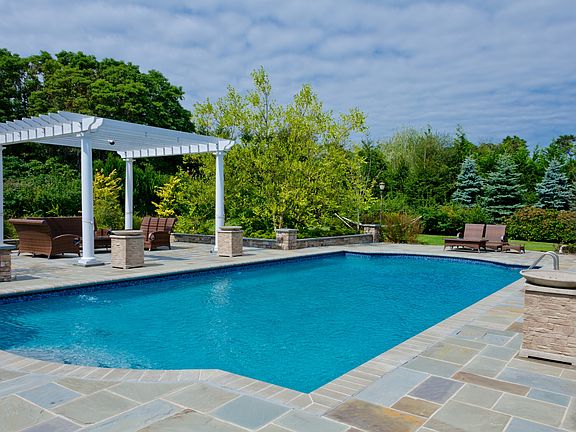 This beautiful Southampton new house has it all. Six bedrooms and five and one-half baths and a heated gunite pool with hot tub on 1.5