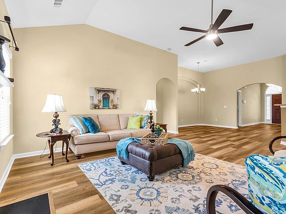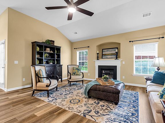 Designed with comfort in mind! ONE level living with almost 2000 sq feet. Smooth 12 foot ceilings with brand NEW ceiling fans in great room and Master Bedroom Trey ceiling. Gas log fireplace central to the inviting open floor plan. Kitchen has a new refrigerator and ample lighted countertop with a pantry off of the breakfast area. Enjoy the split floor plan for privacy when guests come to stay. The foyer is gallery style with lots of room to showcase those special paintings and collectibles. Great dining room space just off the kitchen for easy social gatherings. Step out the back porch door to a private patio surrounded by a 6 foot privacy fence. Enjoy the level lawn for easy maintenance. Put this one on your must see list. Well maintained with great curb appeal! Worth seeing…Worth Owning.